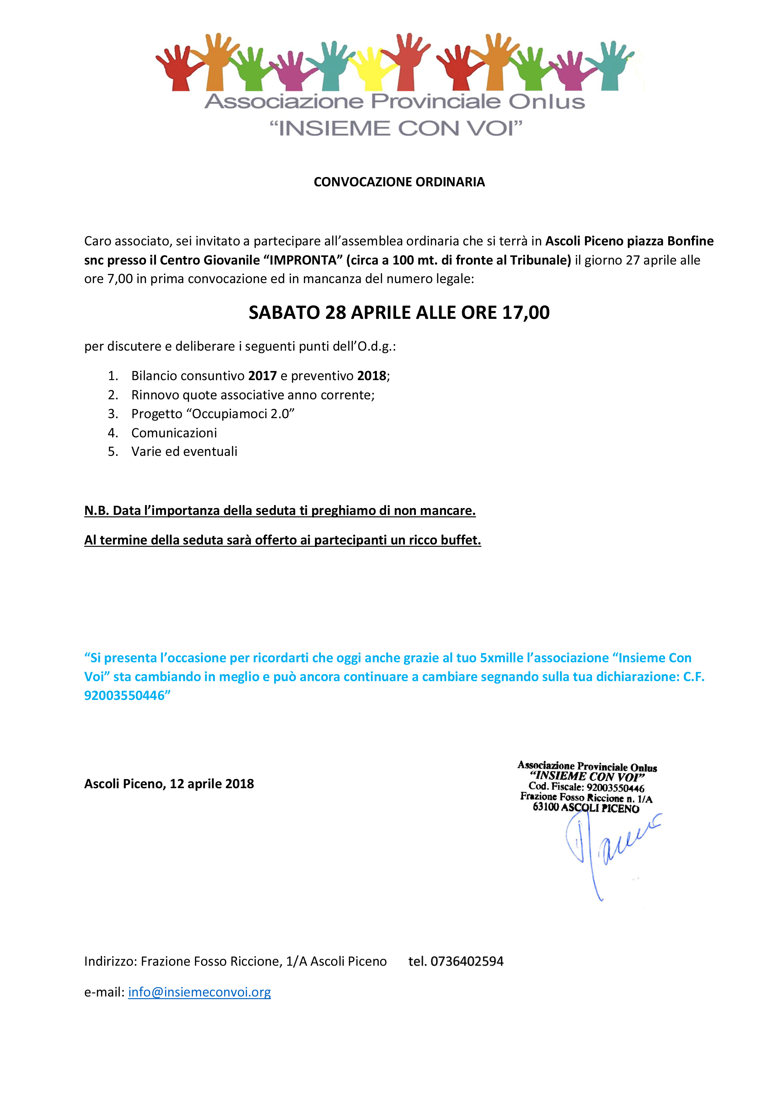 Sabato 28 aprile u.s. si è svolta l’Assemblea ordinaria dei Soci presso il centro giovanile “L’Impronta” per discutere i punti all’ O.d.G. come da convocazione. Si ringrazia per la numerosa partecipazione e si ricorda che il progetto è reso possibile grazie alla collaborazione della Fondazione Cassa di Risparmio di Ascoli Piceno