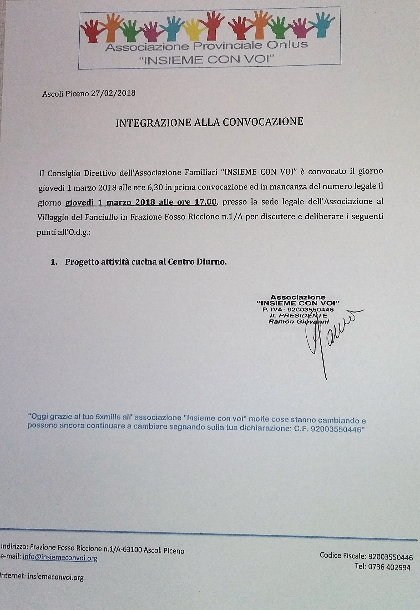 Ai punti all’O.d.g. della convocazione ordinaria precedentemente pubblicata manca il rinnovo del Consiglio Direttivo. Verrà infatti richiesto ai soci in assemblea il rinnovo del consiglio così come previsto nello Statuto associativo alla scadenza di questo triennio di mandato il 30 giugno p.v.